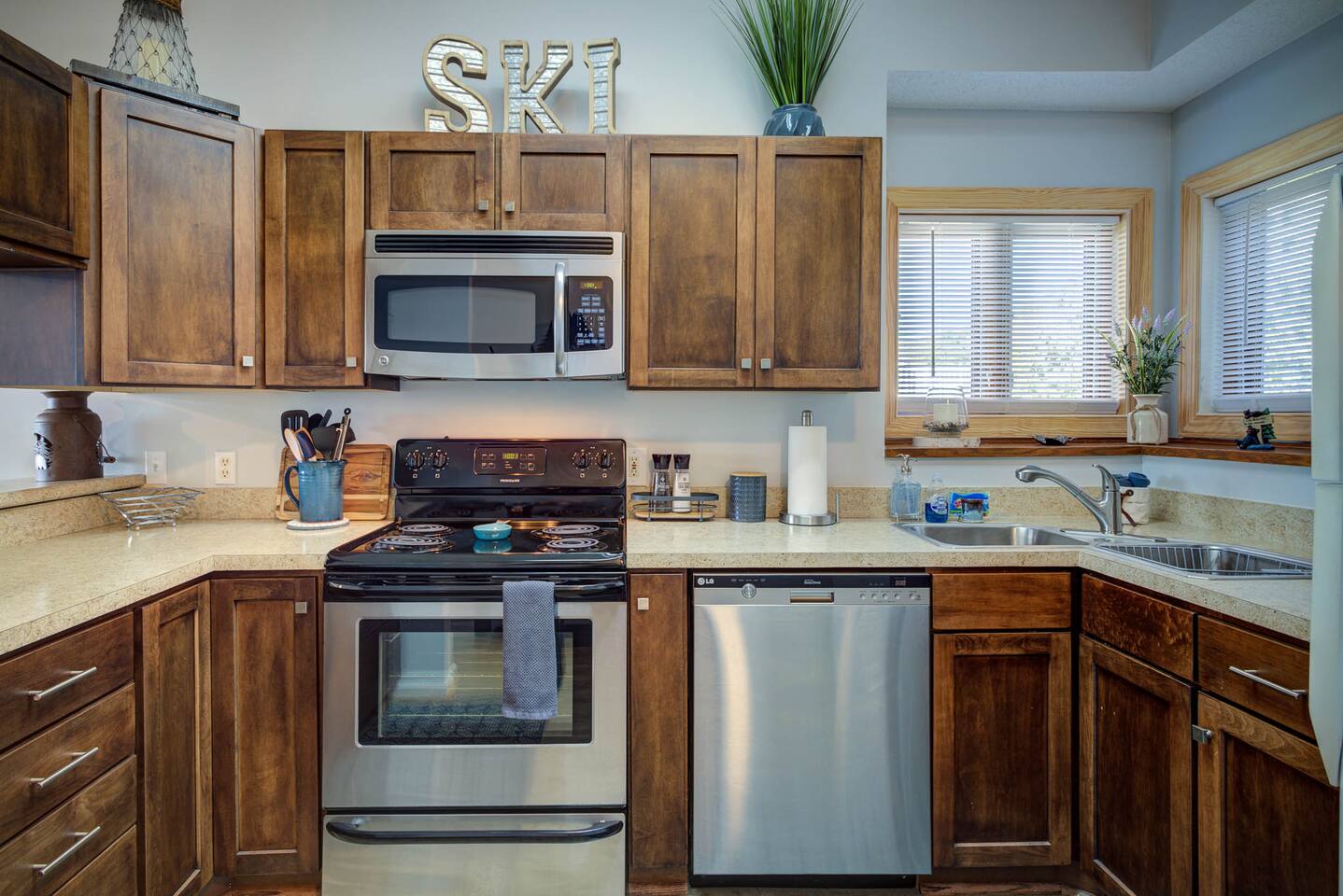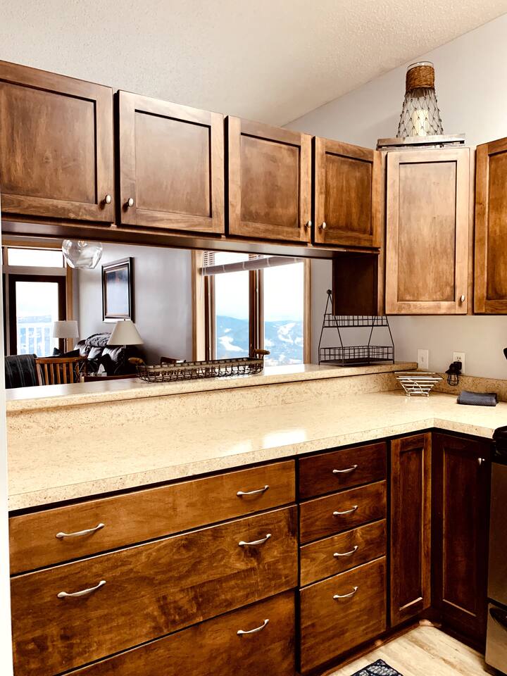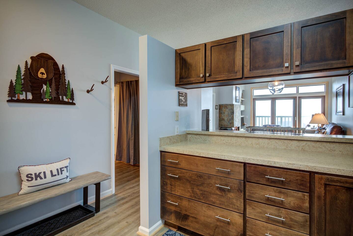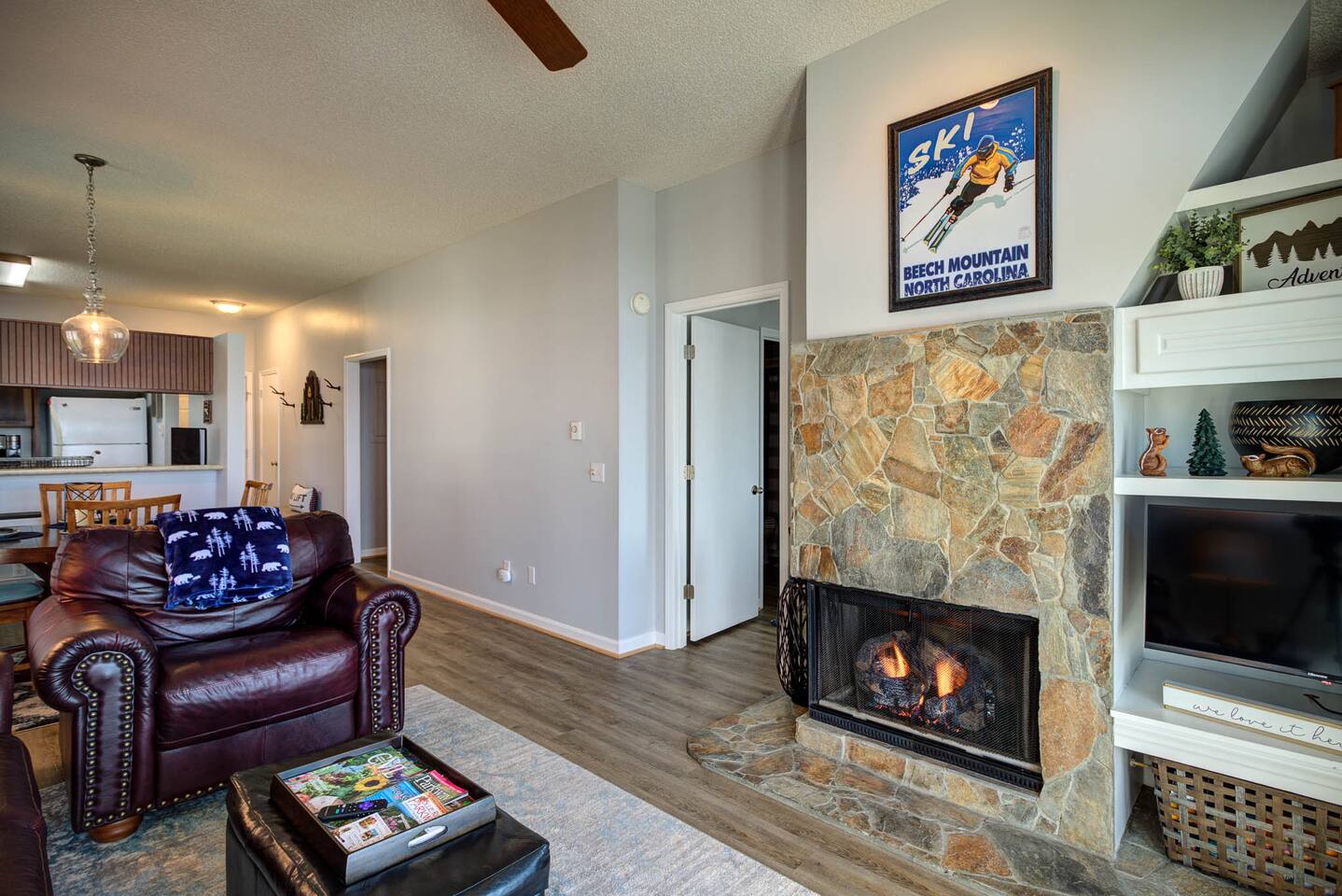 Our inviting mountain condo offers the perfect blend of comfort and convenience, featuring keyless entry, a private covered deck, and plenty of on-site parking. The spacious kitchen is fully stocked and includes a dual coffee maker, so you can brew a full pot or a single-serve K-Cup. We even provide a few K-Cup pods to get you started! Relax in front of the double-sided gas fireplace on the new, cozy couch, surrounded by stylish mountain décor. The primary bedroom features a comfortable king-size bed, while the second bedroom offers a queen-size bed, both accompanied by two full bathrooms. We’ve also provided a pack 'n play for guests with young children. Need More Space? We manage the condo next door, offering the same high standards and amenities, perfect for larger groups or families needing extra room. Book now to experience a luxurious stay in the heart of Beech Mountain!